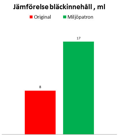 *Miljöpatron ("profesionally remanufactured and refilled") med 1 års garanti. Miljöpatroner är återfyllda bläckpatroner vilket medför att vissa skrivare felaktigt indikerar "låg bläcknivå" trots att det finns mycket bläck i patronen.